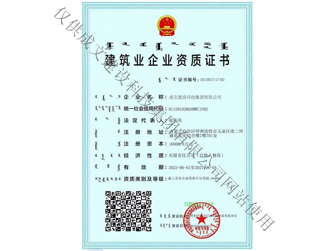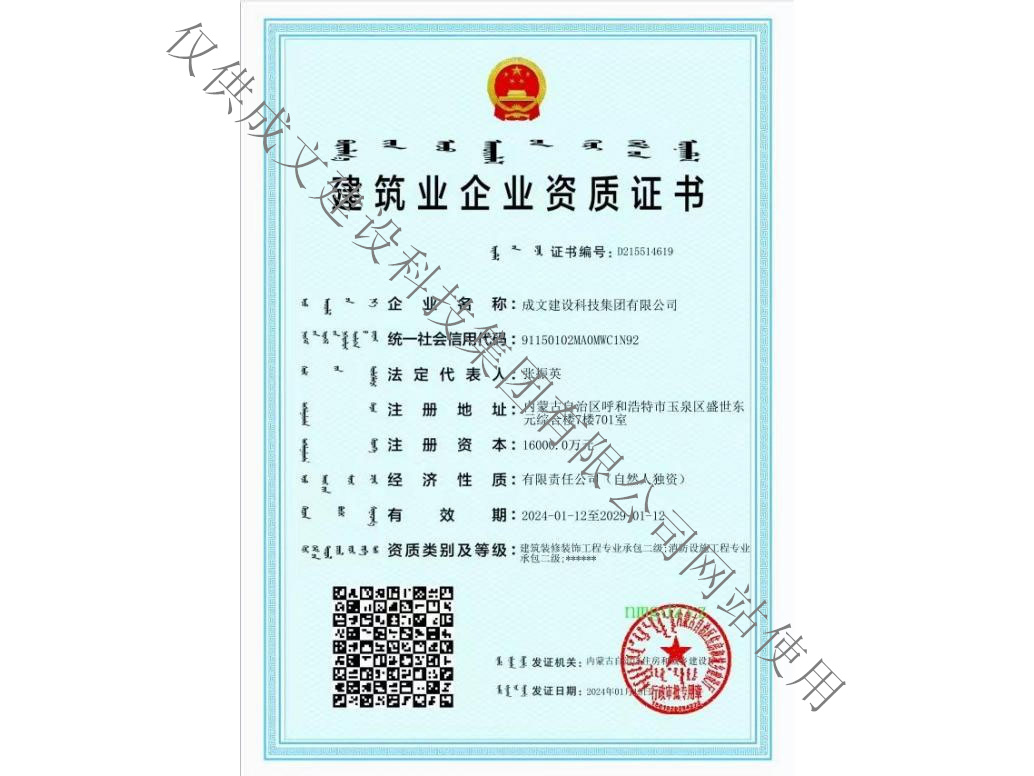 成文建设科技集团有限公司(以下简称成文集团),创建于2015年,是一家专业从事网络工程、通信工程、水利工程、建筑工程、消防工程、装饰装修等为一体的民营高新技术企业,公司通过了国际IS09001质量体系认证,注册资金16000万元,是内蒙古优秀民营企业目前拥有200余名员工。在区内外等多个城市建立项目解决方案与服务网络,以及9个辐射全区的服务网点。 作为自治区内领先的云计算、大数据服务商,成文集团已经形成涵盖通信、政府、企业、金融、教育、军队等国家重点领域的整体解决方案服务能力。公司凭借高端服务器、海量存储、云操作系统、信息安全技术为客户打造领先的云计算基础架构平台,基于政务、企业、行业信息化软件、终端产品和解决方案,全面支撑智慧政府、企业云、垂直行业云建设。成文集团业务覆盖建筑智能化、消防智能化系统、电子与智能化工程、系统集成、物联网工程、软件开发和应用集成、在线云计算应用服务、数据中心运维服务等八大产业群组,全方位满足政府与企业信息化需求。